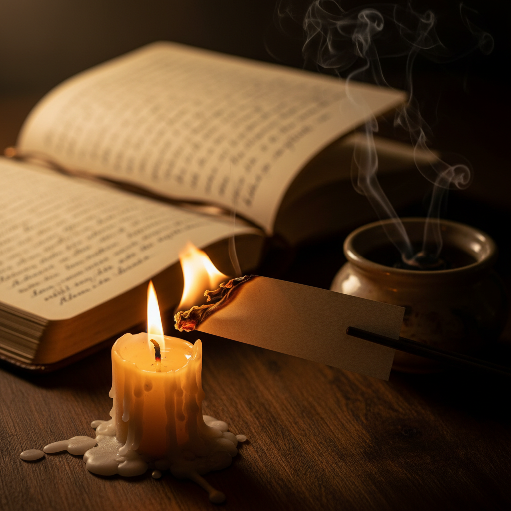 - In Räucherwerk sprechen – vor dem Anzünden dein Thema hineinsprechen und dann abbrennen lassen
